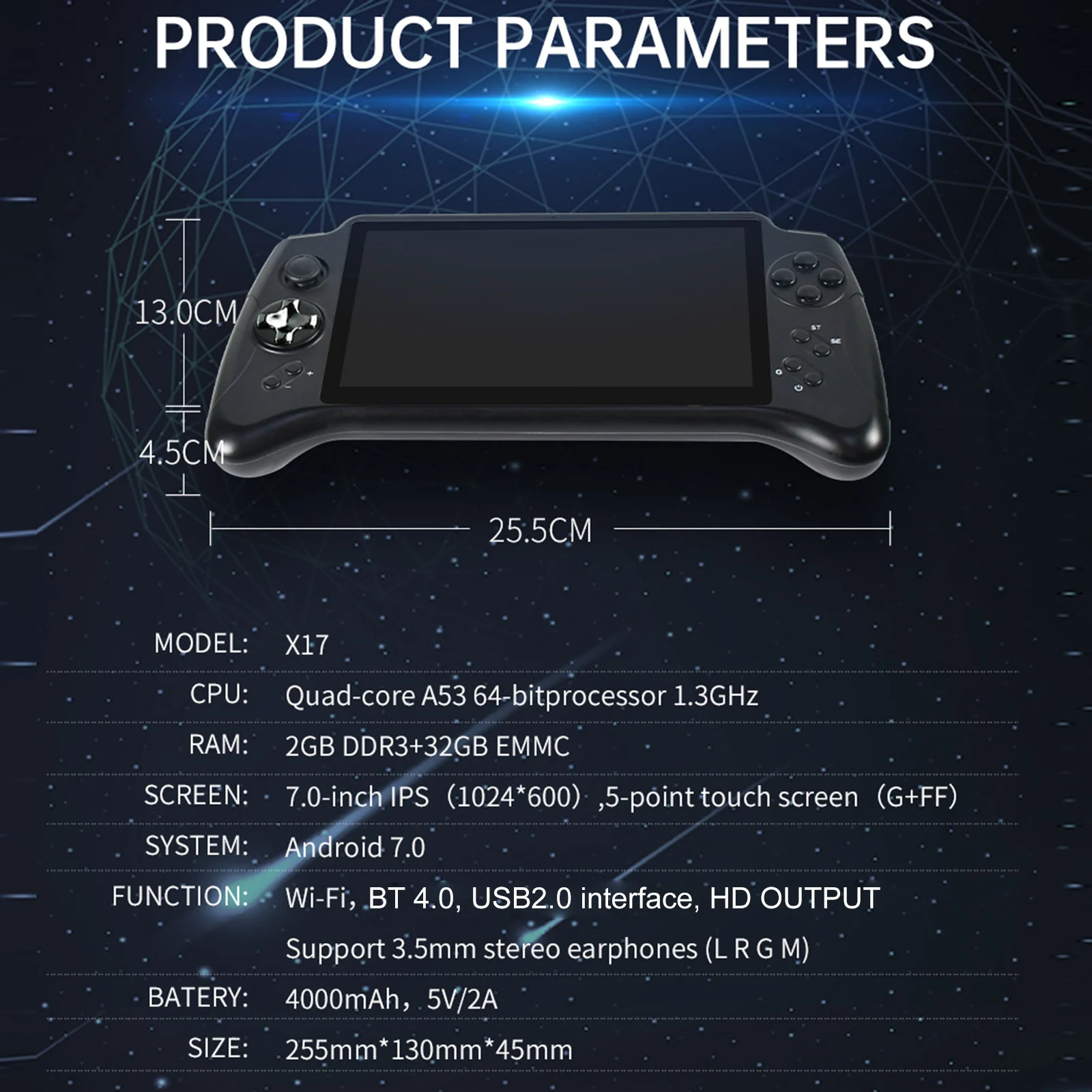 Android 7.0 Handheld Game Console 7inch IPS Touch Screen Portable WiFi