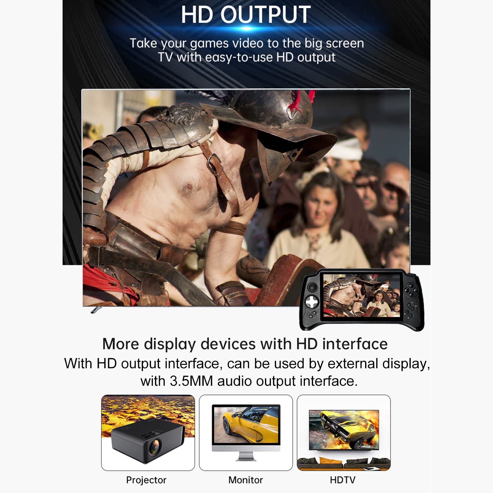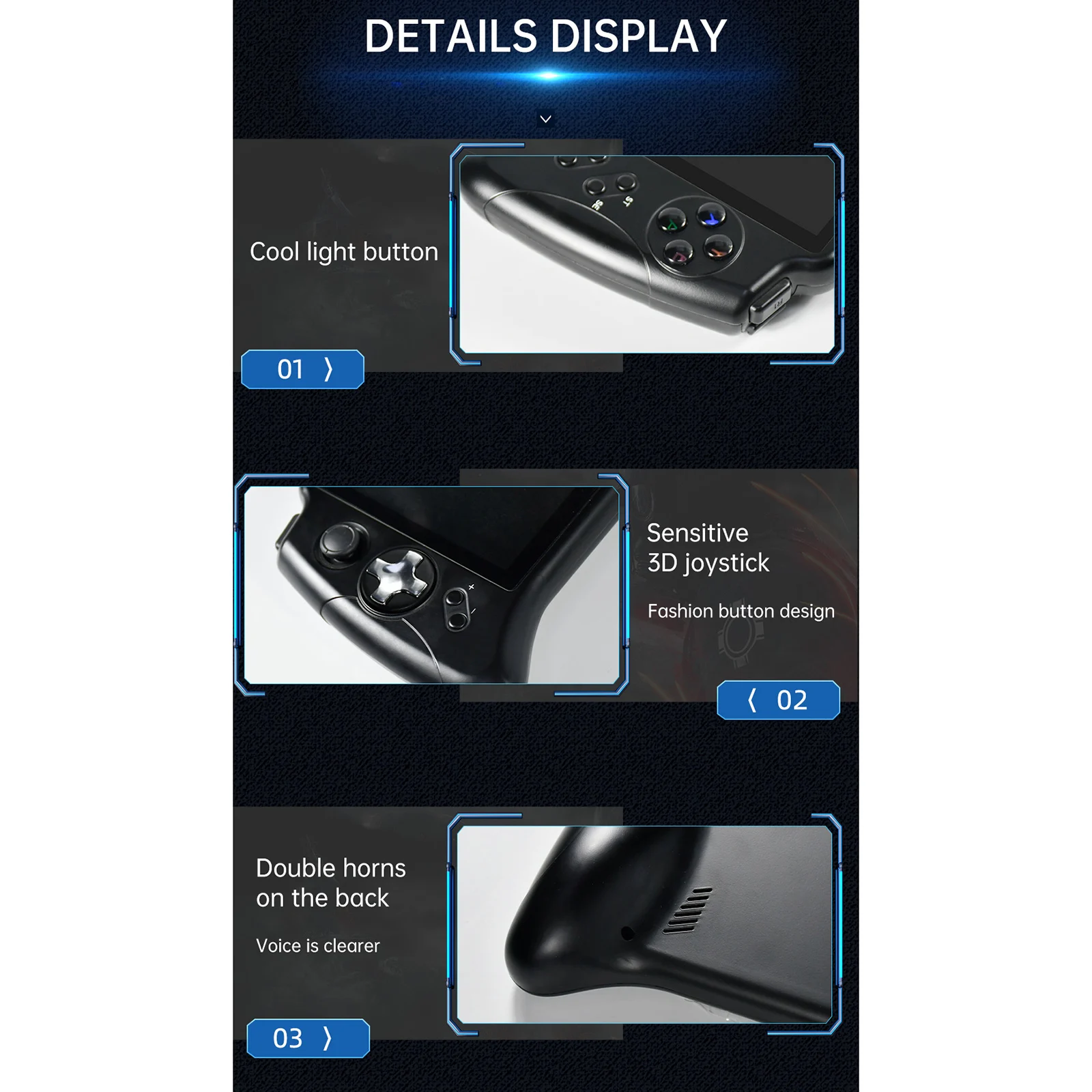 Multi-functional handheld game console Android 7.0system, 2GB+32GB body memory, support for a variety of games, support for WIFI download, Bluetooth data transmission, support for TF card expansion.