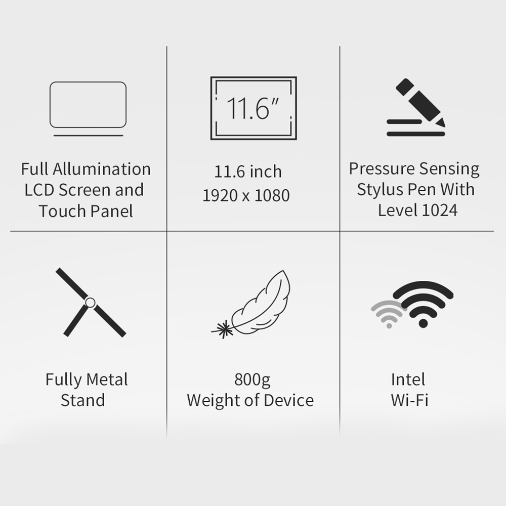 Pressure Sensing Stylus Pen With Level 1024 and LCD of 72 bercent color gamut together bring quick and real experience of writting and drawing.