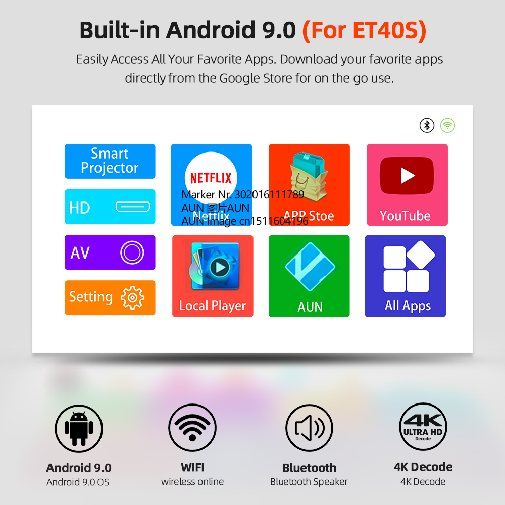 Connect to internet, Use AUN ET40S to Start enjoying Online videos, music and games. Support 4K video playback.