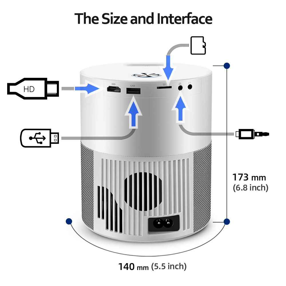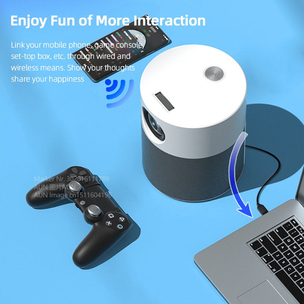 AUN ET40C offers an easier way to mirror screen by wire-free or wired connections (iOS only). It allows to connect to your iOS or Android devices easily through Wi-Fi network or simply via a Lightning cable.
